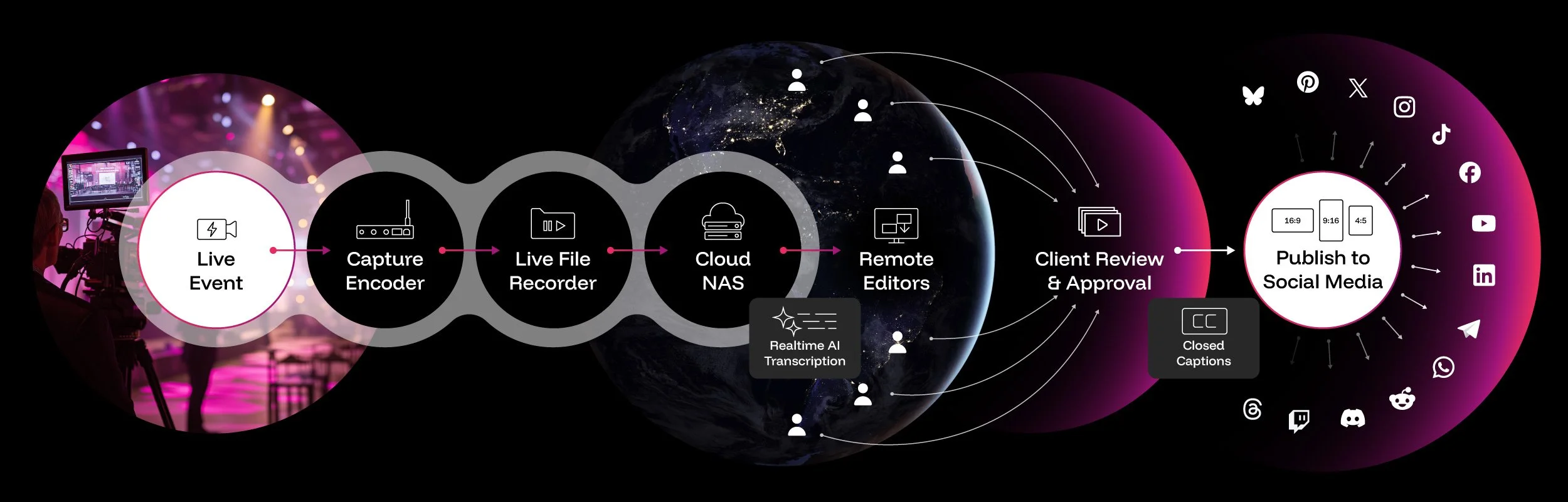 Social media marketing professionals may approach each event and social platform differently, determining the ideal number of clips to post during their events. But the ClipSocial workflow is highly expandable, often using several remote editors working concurrently to create very high volumes of custom branded clips, in multiple formats. Clients have learned to take advantage of their team’s focused attention, to generate large archives of valuable event content for publication over the days and weeks following their events.